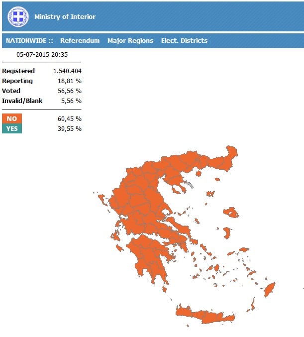 Le ” OXI ” arrive en tête avec 60,45% selon des résultats provisoires et devrait dépasser les 61%