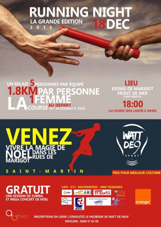 Marigot à la fête dès aujourd’hui ! A 18h débute la manifestation « Running Night ». Après quelques animations, dont la remise de lettre aux Père Noël, la course sera lancée à 20h00. 1,8 km couru en relais dans Marigot, avec 5 personnes par équipe dont 1 femme au départ.