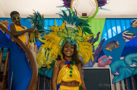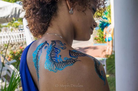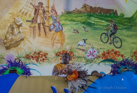C’est dans une ambiance carnavalesque que l’Office de Tourisme organisait sa journée portes ouvertes aujourd’hui de 11h à 15h. Au programme de la musique et une animation par Ricky Da Phox et des danseurs vêtus de beaux costumes de carnaval colorés. Un atelier pour se faire un tatouage avec des paillettes pour enfants et adultes était également organisé ainsi qu’un stand de cupcakes et vente de punch local.