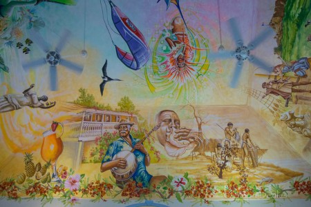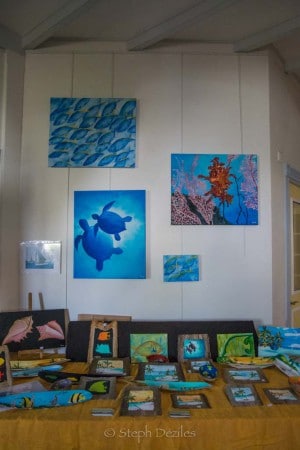 A l’intérieur de l’Office de Tourisme la fête était aussi présente avec un buffet organisé pour le déjeuner. L’artiste ‘Lisa’ exposait également ses ouvres, des acryliques peintes sur support naturels ou sur toiles et sur le thème « Under the Sea ». Il est possible d’admirer ses œuvres à la Galerie des Iles sur le marché de Marigot ; Busco et les Artisans de l’île à Grand Case ; et Artbox à Philipsburg.