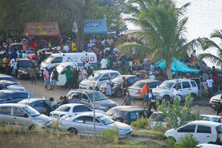 J’ai la chance depuis chez moi de disposer d’une imprenable vue sur Friar’s Bay… en ce lundi de Pâques, c’est sur une marée humaine agglutinée autour des trois sonos sur-vitaminées et qui proposent naturellement trois “sons” différents, histoire que la cacophonie soit parfaite, que le regard n’avait d’autre choix de se poser entre 10h et 22h.